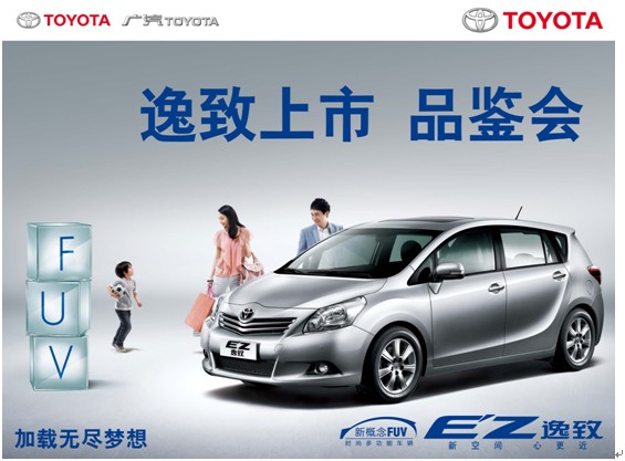 2011年7月16日,廣汽豐田為中國(guó)消費(fèi)者精心打造的首款FUV車型E’Z逸致在廣汽豐田迅利江南店舉行了上市儀式,而全國(guó)近300家銷售店也同步上市發(fā)售。