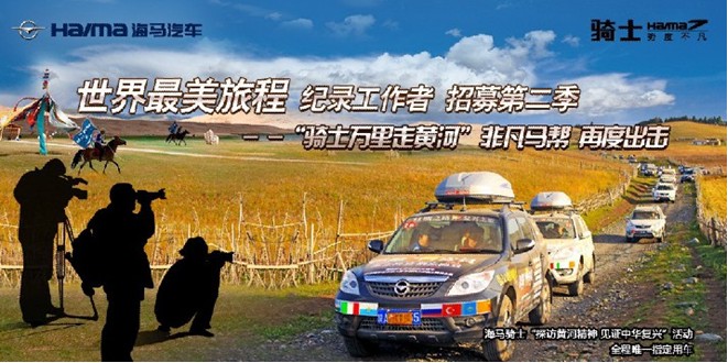 海馬汽車面向全國招募十二名非凡馬幫成員,共赴騎士之旅,探尋不凡之源,不要求您十八般武藝樣樣精通,只要您有一顆熱愛黃河、渴望親近黃河的赤子之心,并能通過網(wǎng)絡(luò)活動(dòng)平臺(tái)提交您的攝影、視頻、美術(shù)、音樂、文學(xué)等作品,我們將評(píng)選出十二名非凡馬幫成員,代表海馬騎士萬里走黃河、一同感受不凡的騎士之旅!