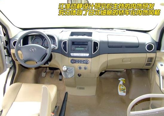 內(nèi)部裝飾上則是由江淮日本東京設(shè)計(jì)研究院主刀,有明顯的轎車風(fēng)格。典型的轎車一體式中控局部看上去完全不會(huì)認(rèn)為這是一款輕客商用車,并且配置上也是向著轎車靠攏,車載GPS、DVD及倒車影像系統(tǒng)加強(qiáng)了娛樂(lè)服務(wù)功能,而ABS、EBD以及氣囊的配置則加強(qiáng)了被動(dòng)安全性能?梢哉f(shuō)星銳整部車同時(shí)具備了歐陸風(fēng)格的時(shí)尚及日式細(xì)膩的內(nèi)部裝飾,在硬件上具備了與依維柯、全順一爭(zhēng)市場(chǎng)的能力,而不到20萬(wàn)的價(jià)格,又避免會(huì)面臨奔馳sprinter那樣質(zhì)好價(jià)高帶來(lái)的曲高和寡的局面。