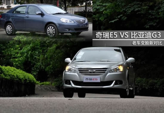 老款車有老款車的好處,例如成熟,品質(zhì)經(jīng)得起檢驗(yàn),而且保養(yǎng)維修便宜方便等等。尤其是對(duì)于自主車而言,上市多年的車型要比全新車型更值得考慮。不過,老款車的審美疲勞是個(gè)問題。于是,經(jīng)過變臉改款而“煥然一新”的“新老款車”,無疑就變得非常合適了。新上市的奇瑞E5就屬于老車變臉而來的新車型。相應(yīng)的,比亞迪推出的G3雖上市時(shí)間比奇瑞E5要長(zhǎng)不少,但相比自家的F3也算是變臉改款的新品了。這兩款車的價(jià)格相當(dāng),尺寸接近,誰更值得選擇呢?