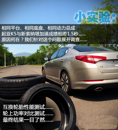 關(guān)于這個(gè)問(wèn)題,在之前的K5測(cè)試文章里我同事胡正暘已經(jīng)有了初步分析起亞K5和索納塔的底盤、發(fā)動(dòng)機(jī)、變速箱、輪胎尺寸,甚至車重都幾乎相同。而后經(jīng)過(guò)對(duì)比我們又發(fā)現(xiàn)K5和索納塔搭配的是相同尺寸,不同品牌的輪胎,一個(gè)是韓泰OPTIMO系列,一個(gè)是米其林Primacy LC系列,而這點(diǎn)也是輛車在硬件配置上的最大區(qū)別。兩款輪胎的價(jià)格相差一倍左右,對(duì)性能產(chǎn)生影響也是情理之中,因此我們也遵循這個(gè)方向開始了調(diào)查與論證。