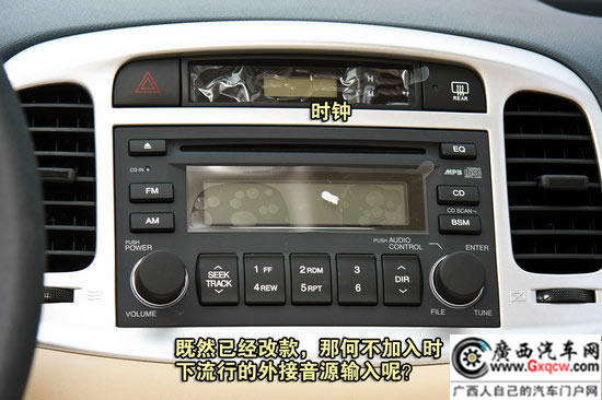 新款雅紳特全系車型都將大燈水平高度調(diào)節(jié)納入到標(biāo)準(zhǔn)配置當(dāng)中,對(duì)于行車安全性考慮更為周到。不過老舊的音響系統(tǒng)確實(shí)讓筆者有些費(fèi)勁,之前在改款伊蘭特就出現(xiàn)的問題再次出現(xiàn)在雅紳特上。僅支持MP3格式CD的它在如今已經(jīng)毫無優(yōu)勢(shì)可言,放眼看去新款車型有哪個(gè)不帶AUX、USB或是SD卡接口?