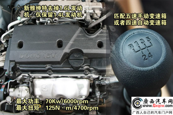 新款車型不再配置1.6L發(fā)動(dòng)機(jī),而是全部使用1.4L發(fā)動(dòng)機(jī),但這卻并不是瑞納所搭載的帶有CVVT連續(xù)可變氣門正時(shí)系統(tǒng)的1.4L發(fā)動(dòng)機(jī)(78.7Kw,135N•m)。70Kw的最大功率以及125N•m的最大扭矩在現(xiàn)在已不再具備優(yōu)勢(shì),相信實(shí)際油耗表現(xiàn)也不會(huì)有任何驚喜。變速箱有五檔手動(dòng)變速箱和四檔自動(dòng)變速箱兩款可選,其手動(dòng)檔車型最高時(shí)速可達(dá)180km/h,而自動(dòng)檔車型僅為156km/h,一定程度上表征其自動(dòng)變速箱傳動(dòng)效率……