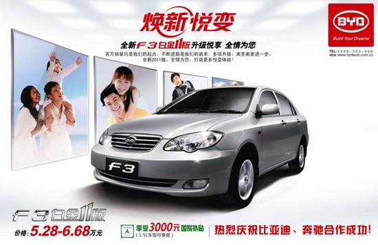 根據(jù)環(huán)保部網(wǎng)站發(fā)布的公告,從7月1日起,輕型汽油車、兩用燃料車和單一氣體燃料車均開始實施國4排放標準,不符合排放標準的車型將不能銷售和注冊登記。下面筆者就向大家推薦三款達到國4標準的中級家轎——比亞迪F3白金11版、新凱越和花冠。這三款車無論是外觀設(shè)計、科技配置,還是動力系統(tǒng),都是中級家轎中的佼佼者,相信可以為有購車計劃的朋友提供一些參考。