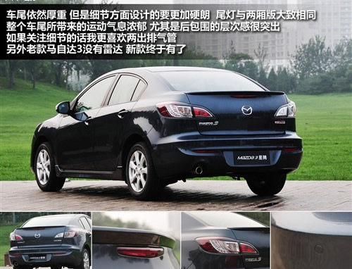 新款車型的車尾依然厚重,但是整體感覺明顯硬朗很多,后包圍層次感豐富,后備廂帶有小擾流板并且在后備廂頂部集成了高位剎車燈,強調運動元素。尾燈的設計與兩廂車型基本相同,車尾總體感覺較好,像是那么回事兒。在配置方面,現(xiàn)款三廂馬自達3全系都不帶有倒車雷達,這在我們的《就是差一點》系列文章中也提到過,用戶購車后需要自己加裝倒車雷達,這對于一臺十幾萬的緊湊型車來說未免尷尬,在新款車型終于配備了倒車雷達。