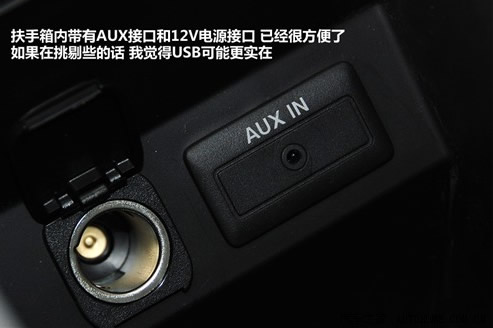 擋把后面的扶手箱內(nèi)帶有AUX和12V電源接口,方便駕駛途中收聽外接音源,以及使用其他用電器,如果在講究些的話,USB接口可能更實用方便。
