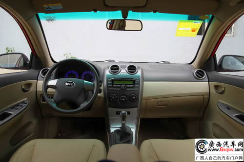 雖然是兩廂車,但G3R空間并不小。數(shù)據(jù)顯示,其外觀尺寸為4380mm×1705mm×1490mm,軸距達(dá)到2600mm,另外擁有360L的超大行李箱,如此寬敞的車身空間,在兩廂車中算是首屈一指的大兩廂。雖然不能實現(xiàn)后排座椅4/6分割放倒,喪失了一些儲物的靈活性,但是相比那些不能放倒的車型來說,它可整體放倒的功能也可以方便很多購買大件商品的車主。比亞迪G3R的內(nèi)飾布局與他的同門師兄G3沒有明顯差別,選用材質(zhì)也相同,但是可以明顯感受到精細(xì)度的提高。在營造空間舒適感方面,G3R采用上深下淺的灰色系色調(diào)給人以清爽淡雅的感覺。