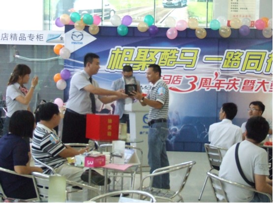 2011年7月31日,廣西鑫廣達(dá)長久汽車銷售服務(wù)有限公司三周年慶活動在店內(nèi)隆重舉辦,此次活動吸引來了眾多長安馬自達(dá)新老客戶參與,在新老顧客的支持和陪同下廣西鑫廣達(dá)長久汽車銷售服務(wù)有限公司三周年慶活動取得了圓滿結(jié)束。