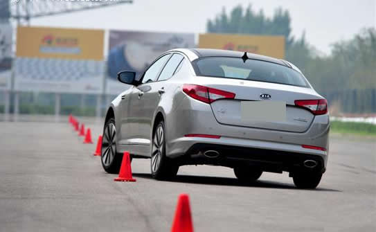 電子助力的使用,解決了極限狀態(tài)下,轉向發(fā)生頓挫的可能,實際上,不管在任何車速下,K5的轉向都會十分輕盈,車身也很聽話,基本上對轉向機的回饋很直接。雖然車身很低,但避震器并沒有在硬度和韌性上做出太多運動化的設定,這在繞樁過程中表現(xiàn)的十分明顯,避震器會在極限下被壓縮的很夸張,且回彈較慢。在關閉穩(wěn)定程序后,車尾會變得不太安分,但60公里的繞樁速度,可以說明它的底盤功力不容小覷。