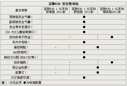 三、寶駿630安全性能對(duì)比: