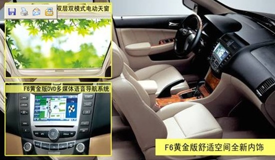 長期以來,比亞迪在追求卓越品質(zhì)的同時,依托在IT領(lǐng)域的技術(shù)積累,為旗下車型搭載了豐富的電子設(shè)備。F6車型就搭載了倒車雷達、三色顯距倒車影像監(jiān)視系統(tǒng)、中文八方向顯示防眩目內(nèi)后視鏡、NAVI語音導航系統(tǒng)等高端配置,更加豪華、舒適、大氣。雙模多媒體音頻輸入接口(USB+AUX)、雙溫區(qū)獨立控制自動空調(diào)、CAN-BUS電子智能管家系統(tǒng)及車內(nèi)空氣凈化系統(tǒng)等配置,都為乘客營造了更加舒適的車內(nèi)環(huán)境。