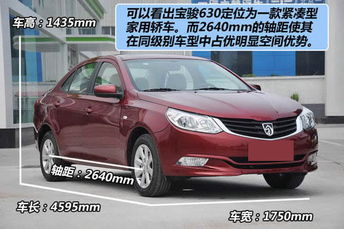 寶駿630是一款設(shè)計很成熟的車型,其外觀基本找不到模仿和借鑒的痕跡。不得不說,駿馬形的logo是寶駿630最明顯的車頭特征之一。作為一款家用經(jīng)濟性轎車,寶駿630車身側(cè)面線條收放自如,符合國內(nèi)消費者對三廂車的審美習(xí)慣。在尺寸方面,寶駿630的長寬高分別為4597mm/1736mm/1462mm,軸距達到了2640mm,在這個尺寸下可以提供給用戶舒適的駕乘空間環(huán)境。
