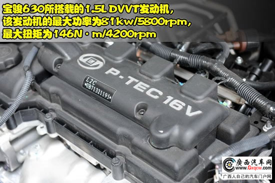 動力方面,寶駿630首批上市的三款車型所搭載的均為1.5L DVVT發(fā)動機(jī),該發(fā)動機(jī)的最大功率為81kw/5800rpm,最大扭矩為146N·m/4200rpm。這臺1.5L發(fā)動機(jī)與樂馳上面所搭載的那臺1.0L發(fā)動機(jī)也同屬于P-TEC系列產(chǎn)品,而且其在動力方面的表現(xiàn)也還是不錯的。