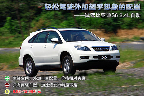 作為比亞迪旗下SUV車型的處女作,S6面世即被定位于中高端城市多功能SUV,驚嘆之余不免讓人對(duì)它充滿了好奇。除了與某款豪華SUV神似的流暢外觀設(shè)計(jì),S6也有著頗為健碩的身軀、寬裕且靈活的內(nèi)部使用空間,當(dāng)然,最出彩的依然是比亞迪一貫?zāi)檬值母吲渲,配合其?shí)惠的價(jià)格定位,相比對(duì)手而言,性價(jià)比的優(yōu)勢(shì)一目了然。