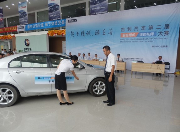 2011年8月19日,吉利汽車(chē)第二屆服務(wù)顧問(wèn)與維修技師大賽南寧中心選拔賽,在南寧運(yùn)澤汽車(chē)銷(xiāo)售服務(wù)有限公司圓滿(mǎn)落幕。此次大賽的目的是為了更好的打造“關(guān)愛(ài)在細(xì)微處”的服務(wù)理念,整體提高南寧中心各服務(wù)站服務(wù)顧問(wèn)的業(yè)務(wù)技能、綜合素質(zhì)和服務(wù)水平,全方位提升吉利汽車(chē)用戶(hù)滿(mǎn)意度。