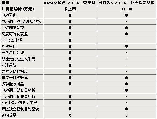 馬自達(dá)3星騁在舒適性配置方面進(jìn)行了全面的升級(jí),在保留電動(dòng)天窗、真皮座椅的同時(shí),增加了一鍵啟動(dòng)系統(tǒng)、定速巡航等兼顧檔次性與實(shí)用性的配置。不過(guò)遺憾的是,馬自達(dá)3星騁全系都沒(méi)有配備座椅電動(dòng)調(diào)節(jié)功能,這一點(diǎn)上較老款稍顯不足。