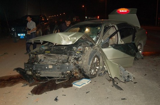 事故發(fā)生在8月25日凌晨5時(shí),324國道玉容公路坡耀村路段,該路段正在修路。一輛進(jìn)口沃爾沃s80高級小轎車擺在道路上,小轎車的前保險(xiǎn)杠已經(jīng)脫離車體,飛到一邊去了。前引擎蓋掀起,整個(gè)的引擎蓋都露了出來。受損的引擎,使得機(jī)油流了一地。車輛旁的一段長達(dá)3米的水泥隔離墩被撞得來了個(gè)90°的掉頭。