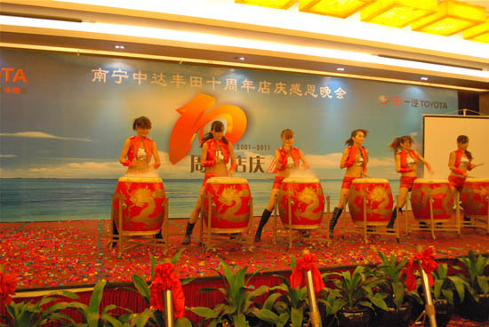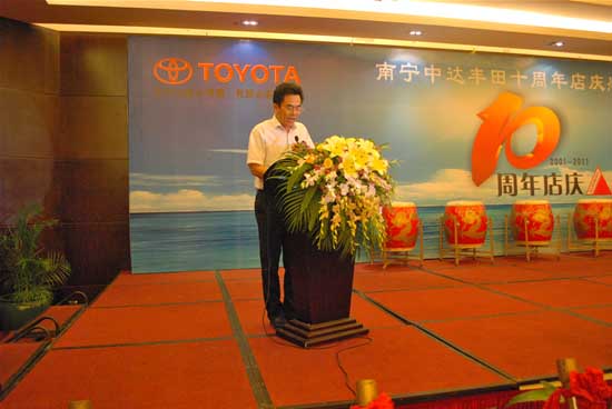 2011年9月6日晚,一汽豐田、進口豐田廣西授權(quán)經(jīng)銷商——南寧中達豐田汽車銷售服務(wù)有限公司(以下簡稱南寧中達豐田)在廣西國際沃頓大酒店隆重舉行十周年店慶感恩晚會,各級政府領(lǐng)導(dǎo)、兄弟單位、新聞媒體、中達豐田客戶以及諸多見證了南寧中達豐田十年來變遷和發(fā)展的中達集團嘉賓共計四百多人參加了本次慶典活動。