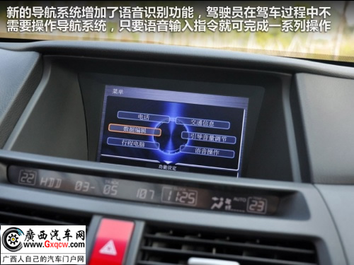 索納塔的頂配車型帶有彩色液晶屏和導(dǎo)航系統(tǒng),可以外接U盤欣賞音樂,這套多媒體系統(tǒng)可以完全按照U盤內(nèi)文件夾來播放,并且可以區(qū)分U盤內(nèi)音樂文件的隱藏屬性來區(qū)分藝術(shù)家,非常人性化。我們從車主手中借來的雅閣不具備導(dǎo)航系統(tǒng),而與這輛索納塔(24.99萬)價(jià)格差不多的雅閣2.4L EX Navi(24.98萬)也同樣具備導(dǎo)航系統(tǒng),同樣可以外接音源并且還具備內(nèi)置硬盤,比索納塔的多媒體系統(tǒng)在儲(chǔ)存方面更勝一籌,但索納塔卻從音響部分進(jìn)行反擊,全車infinity名牌揚(yáng)聲器的音質(zhì)很棒,至少在同級(jí)車中屬于佼佼者。