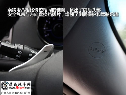 索納塔在配置方面比較有優(yōu)勢(shì),頂配的索納塔具備前后排頭部安全氣簾,這是24.98萬(wàn)元的雅閣所沒(méi)有的。同時(shí)為了應(yīng)對(duì)大輪轂、薄胎壁所帶來(lái)的輪胎虧氣表現(xiàn)不明顯的狀況,索納塔還配備了胎壓監(jiān)測(cè)系統(tǒng)。這級(jí)別車一般不多配備的方向盤換擋撥片也能給索納塔增加一些駕駛的樂(lè)趣。