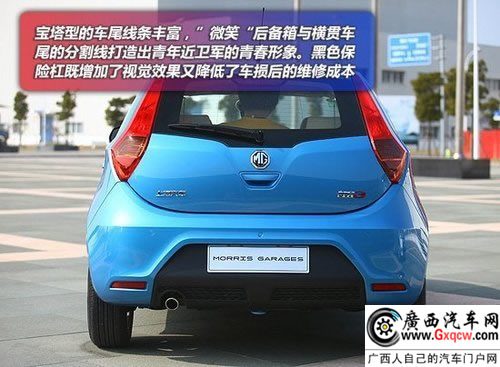 MG3的整車外形設(shè)計(jì)更加具有時(shí)尚感和動感,車頭的整體設(shè)計(jì)與之前上市的MG6有些許的類似,但是由于整車尺寸更小,所以顯得也要比MG6更加靈動一些,而且較短的車身也讓整車的每一處線條都十分清晰。車尾的造型與車頭相比就有點(diǎn)簡單了,只是長條造型的燈組設(shè)計(jì)還算有點(diǎn)亮點(diǎn)。在其他方面,MG3整車的可選顏色也是其另一大賣點(diǎn),整車8種的車身顏色確實(shí)能滿足絕大多數(shù)消費(fèi)者的需求了,并且每一款車身所用的漆面和顏色處理也相對比較到位,整體給人的檔次感很不錯(cuò)。