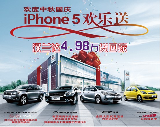 9月10-11日 漢蘭達(dá)試駕活動(dòng)火熱開展 (1)預(yù)約試駕客戶即送廣豐專屬禮品一份; (2)到店試駕的客戶送精美禮品一份,更有機(jī)會(huì)抽取iphone5 (3)超低首付,前所未有,漢蘭達(dá)4.98萬貸回家