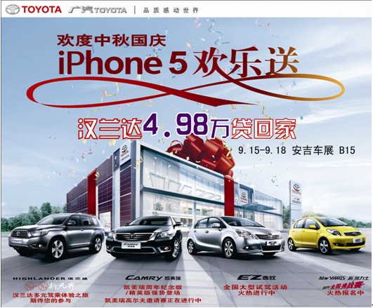 ◆心悅品質(zhì),廣西首發(fā),購凱美瑞200G豪華悅雅版有機會抽取iPhone5