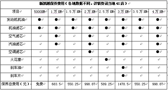 新凱越提供2年或6萬公里保修,同樣以一年2萬公里計(jì)算,首保提供免費(fèi)服務(wù),第二次常規(guī)保養(yǎng)費(fèi)用約為683元,第三次更換發(fā)動(dòng)機(jī)機(jī)油和機(jī)油濾芯需花費(fèi)550元,第四次保養(yǎng)需更換空濾、汽濾和空調(diào)濾芯等項(xiàng)目,費(fèi)用約為998元,如此計(jì)算新凱越平均一年保養(yǎng)費(fèi)用大概在2231元左右。