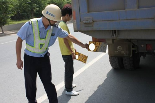 當(dāng)大貨車駛近時,民警發(fā)現(xiàn)該車竟然沒有車牌,于是將司機(jī)叫下車進(jìn)行問話,沒想到司機(jī)下車的時候一手抓著駕駛證、行駛證,一手還抓著一副車牌,并解釋是因為車牌釘?shù)袅,才把車牌放到車上。但一輛車有前后各一塊車牌,難道有這么巧兩塊車牌的螺釘都掉了?在民警的追問下,大貨車司機(jī)顯得底氣不足,只好低頭一聲不吭。很明顯,這車牌是司機(jī)故意拆下來的,目的是逃避交通監(jiān)控探頭的監(jiān)控,可是他沒想到交警會采取錯時制度在中午還上路執(zhí)勤,直接撞上了“槍口”上。