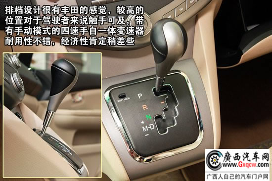 而在變速箱方面,排擋的設(shè)計帶有較為明顯的豐田設(shè)計特征,較高的位置對于SUV車型來說能方便駕駛者使用。而變速箱的選擇也和豐田有著相類似的做法,一臺帶有手動模式的四速手自一體變速器負責傳動S6的動力,技術(shù)成熟的它在耐用性方面相對可靠,不過面對油價飛漲的今天,經(jīng)濟性劣勢逐漸顯現(xiàn)。
