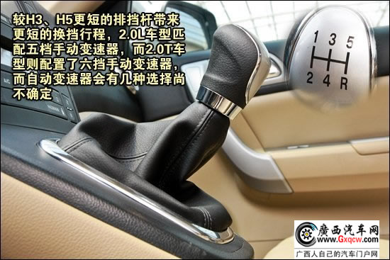變速箱方面,更短的排擋桿有著更短的換擋行程,以前哈弗H3、H5讓我難受的就是長時間使用較長排擋桿,城市里還是短些的方便。初期上市的2.0L車型配置的五檔手動變速器,而2.0T柴油版車型則提供六速手動變速器。