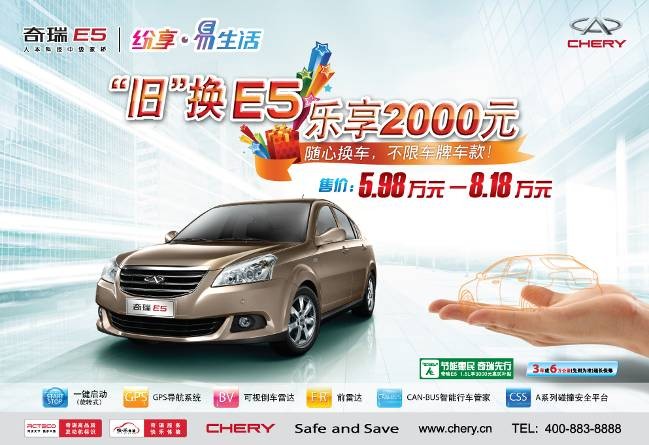 縱覽奇瑞E5,其所為消費(fèi)者帶來的將是一種科技價值的全面提升,其具備了出色的安全性和舒適性、領(lǐng)先同級的科技裝備和穩(wěn)固可靠的產(chǎn)品質(zhì)量。奇瑞E5集眾多科技于一身:一鍵式啟動+無鑰匙進(jìn)入系統(tǒng),徹底簡化以往車輛啟動的繁瑣程序;在行車方面,奇瑞E5搭配了GPS系統(tǒng)、前駐車?yán)走_(dá)+后倒車可視影像系統(tǒng)和行車電腦系統(tǒng)CAN-BUS,使用戶在駕駛時更加直觀、全面地了解路況和車輛運(yùn)行情況;在動力配備上,奇瑞E5搭載了全國十佳ACTECO1.5發(fā)動機(jī),進(jìn)一步提高燃油效率的同時,也顯現(xiàn)了其強(qiáng)勁動力性能。奇瑞E5的整車以優(yōu)越的科技配備顯示出其優(yōu)越駕乘的人本服務(wù)理念。
