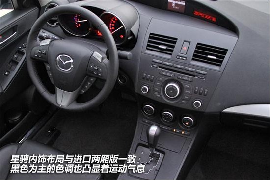 在內(nèi)飾方面,馬自達(dá)3星騁除了空調(diào)出風(fēng)口和擋把外,已經(jīng)采用了全新的設(shè)計(jì)風(fēng)格。星騁的儀表盤、方向盤和中控臺(tái)等處都經(jīng)過(guò)重新的設(shè)計(jì),并采用了大量流線型線條。 雖然按鍵較多,但合理的平鋪式布局讓這些功能按鍵顯得錯(cuò)落有致。此外,馬自達(dá)3星騁提供深內(nèi)飾與深、米兩色搭配內(nèi)飾選擇。