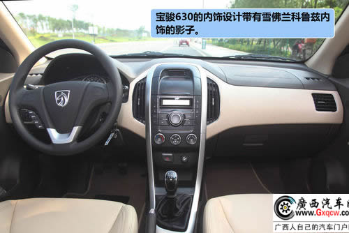 寶駿630采用了深灰色與米色雙色內(nèi)飾,給人非常不錯的親切感,整個中控臺的設(shè)計簡樸而清晰,與通用旗下車型也有相通之處。