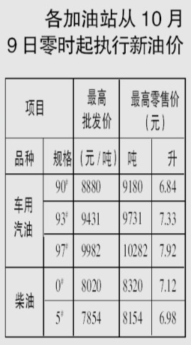 10月8日,自治區(qū)物價(jià)局下發(fā)了關(guān)于降低成品油價(jià)格的通知,決定從10月9日開(kāi)始,與全國(guó)同步下調(diào)廣西成品油價(jià)格。據(jù)悉,這是成品油今年第三次調(diào)價(jià),也是自去年6月1日以來(lái),成品油價(jià)格首次下調(diào)(詳見(jiàn)價(jià)格走勢(shì)圖)。