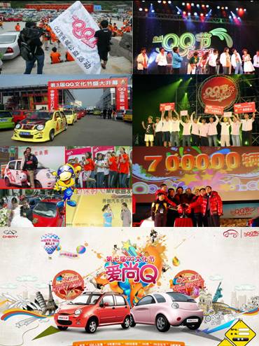 2003年,第一屆QQ文化節(jié)作為全國首創(chuàng)的汽車品牌文化慶典,不僅揭示了“Q族”的存在,也向世人清晰的展示了奇瑞QQ“時(shí)尚、積極、開心、友愛”的品牌文化內(nèi)涵。舉辦至今,從第一屆“時(shí)尚掌門人”到第七屆“愛尚Q”,伴隨著奇瑞QQ品牌的不斷發(fā)展,對(duì)于廣大“Q族”而言,QQ文化節(jié)就如同一個(gè)知心的老朋友,每年都會(huì)如期而至。每一屆QQ文化節(jié),都設(shè)置了大量內(nèi)容豐富的線上線下活動(dòng),充分調(diào)動(dòng)了“Q族”的凝聚力和參與熱情, 讓他們在這個(gè)屬于他們自己的節(jié)日里展現(xiàn)自我,共同慶祝,在無數(shù)的歡慶之中,向他們傳遞了健康快樂的生活理念,給廣大“Q族”們帶來了無數(shù)的快樂,在他們的記憶里留下了不可磨滅的美好回憶。