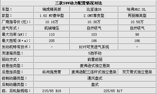 從三款車型的動力配置情況上看,盡管瑞虎的排量比較小,但依托機械增壓技術(shù)的提升,三車在動力輸出方面近乎齊頭并進(jìn)。同為五檔手動車型,擁有相同的驅(qū)動方式,一樣的前懸掛結(jié)構(gòu),而不同的后懸掛類型使它們的路面表現(xiàn)各不相同。