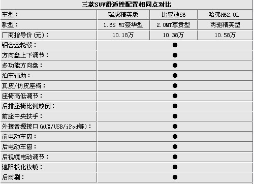 雖然是10萬元級別的SUV車型,但三款車型在舒適性配置上面仍然有很多亮點,也不乏有很多的相同之處。如:多功能方向盤、泊車輔助雷達(dá)功能、外接音源輸入接口等等時下非常實用的配置。