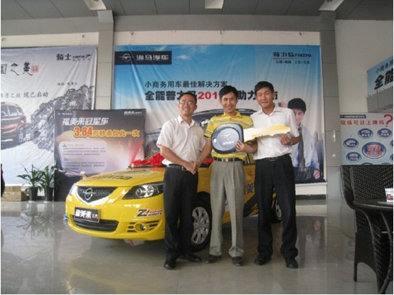 編輯從海馬?凳昀吓频戢@悉,10月16日,“福美來冠軍秒殺季總決賽”在南寧?凳昀吓频臧咨4S店隆重舉行。經(jīng)過激烈短信秒殺、過關(guān)砍將,一位海馬323車主李先生獲得半價購買福美來的權(quán)利。就是她買一輛福美來,僅需3.84萬元。