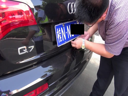 10月12日,五大隊執(zhí)勤民警在南寧收費站檢查時發(fā)現(xiàn)一輛黑色奧迪車沒有懸掛車牌,民警立即將該車攔截并依法進行檢查。該車車牌竟發(fā)在車后尾箱,經(jīng)警務系統(tǒng)索核實,當事人蘇某,經(jīng)警務系統(tǒng)檢索核實,蘇某駕駛的車輛早在2007年就已在車管所注冊登記,然而其為了躲避電子警察,逃避處罰,故出此策。