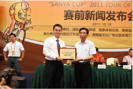 10月20日,2011“環(huán)海南島國(guó)際公路自行車賽”(以下簡(jiǎn)稱“環(huán)島賽”)在海南正式開(kāi)賽。身為“亞洲頂級(jí)”(2.HC級(jí))賽事,本屆“環(huán)島賽”吸引了來(lái)自全世界的137名選手齊聚海南島,將在9天的時(shí)間內(nèi)爭(zhēng)奪38萬(wàn)美金的高額獎(jiǎng)金。在19日的賽前新聞發(fā)布會(huì)上,作為環(huán)島賽最親密的合作伙伴,海馬汽車第六次從主辦方手中接過(guò)合作牌匾,正式成為環(huán)島賽全程唯一指定用車的贊助商。