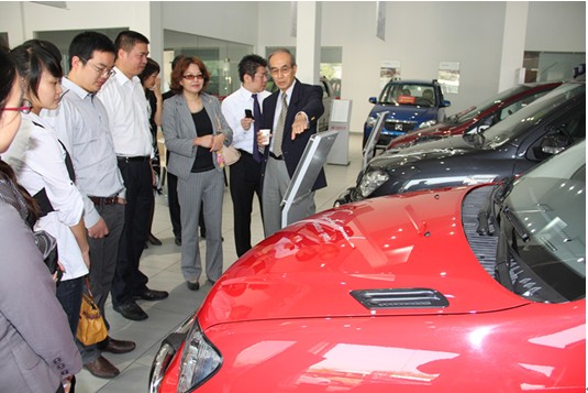 長谷川康司一行實地考察了眾泰汽車杭州基地和位于杭州的眾泰汽車銷售公司。隨后來到集團總部,考察了永康4S店和永康基地的整車生產(chǎn)線,對集團的生產(chǎn)銷售管理進行了深入的了解。