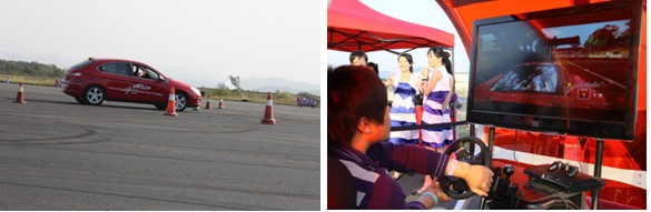 賽場上,選手你爭我搶不甘示弱,賽場下,觀戰(zhàn)者活動也有聲有色。在試乘區(qū),不參加試駕的體驗者可以乘坐由專業(yè)車手駕駛的A3,親身感受A3的高安全配置ESP電子防側滑穩(wěn)定系統(tǒng)在緊急轉向變線情況下的性能,更有機會與頂尖賽車手近距離接觸合影。而試駕模擬游戲區(qū),參加者可以在游戲賽道上“大秀”車技,在這個虛擬的賽場上同樣可以贏得真實的A3車模。整個活動過程中,每一位到場的人都能有所收獲。