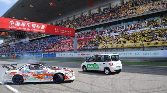 2011年9月18日,由中國(guó)汽車運(yùn)動(dòng)聯(lián)合會(huì)、上海國(guó)際汽車城主辦的2011年CTCC中國(guó)房車錦標(biāo)賽上海站EVC電動(dòng)汽車挑戰(zhàn)賽中國(guó)上海F1賽車場(chǎng)啟動(dòng),經(jīng)過(guò)巡游、分賽段比賽、漂移等數(shù)輪角逐,眾泰新能源汽車技?jí)喝珗?chǎng),脫穎而出,獲得該賽事的冠軍。電動(dòng)車挑戰(zhàn)賽也成為當(dāng)天2011年CTCC中國(guó)房車錦標(biāo)賽上海站最吸引關(guān)注目光的一場(chǎng)賽事。