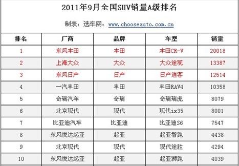 舊版節(jié)能惠民補貼的到期,以及“金九銀十”銷售旺季的來臨,為9月份的國內車市帶了久違的“陽光”。產銷環(huán)比增速均超過15%,銷量增速快于產量的結果,讓人們重新對2011年車市抱以憧憬,尤其是SUV市場17.8%的同比增長,成為僅次于MPV市場18.01%之后,九月份增長最快的細分市場。