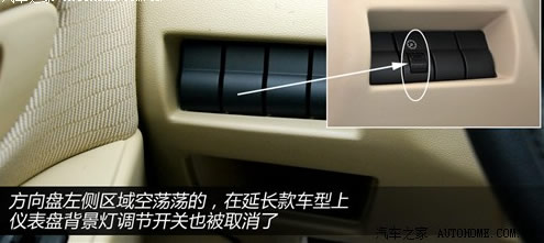 作為一款減配且降低入門價的改款車型,外觀上的變動肯定是遠遠不夠的。進入內(nèi)飾,第一感覺變化不大,細心發(fā)現(xiàn)后,延長款減去一些實用性較強的配置,如果不是配置表的存在,有些細微配置你壓根發(fā)現(xiàn)不了。由于內(nèi)部減配的內(nèi)容涉及到不同的區(qū)域,所以在下面我將詳解每個區(qū)域配置上的差異。