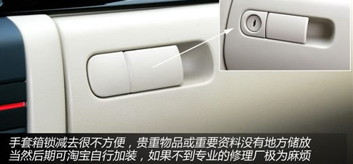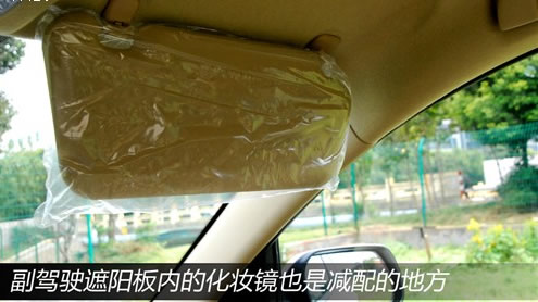 以中控臺為例,方向盤上的音量調(diào)節(jié)按鍵被取消了,而置杯架蓋、點煙器照明、手套箱鎖、儀表盤背景燈等都是此次減配的內(nèi)容,副駕駛化妝鏡也是空蕩蕩的。這幾個配置用不了多少成本,但實際使用起來你就會知道它們的存在的重要性了。