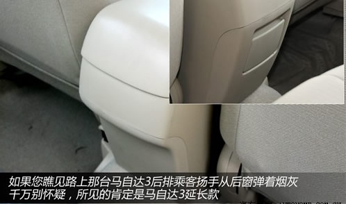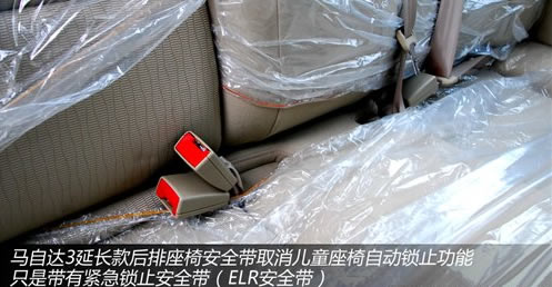 從前文中得知,后排座椅置物袋與中央座椅頭枕都是此次減配的內(nèi)容。除了這兩項以外,后排煙灰缸、后揚聲器這些能為后排乘客提供舒適乘坐的保障的小配置也被減去,后排基本是以“裸座”的情況出現(xiàn)。除了以上這幾項以外,馬自達3延長款還取消了兒童座椅自動鎖止功能,雖然有緊急鎖止安全帶,但它無法固定住兒童座椅。