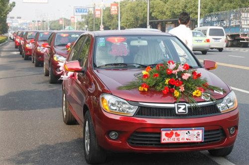 圖2:眾泰Z200HB迎婚車一字長龍排開,氣勢非凡