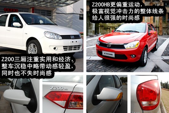 Z200的定位是三廂經(jīng)濟型家庭用車,注重實用和經(jīng)濟。因此,其外觀更有自然大氣之風。給人的感覺是:整車沉穩(wěn)中略帶動感輕盈,也不失其時尚小車所特有的個性和前衛(wèi)的時尚感。而Z200HB的定位則是運動型時尚兩廂車,注重運動和操控。因此,從外觀上,其運動型轎車的基因十分突出。無論是動感銳利的前臉,還是極富視覺沖擊力的整體線條都給人很強的時尚感。加上流線型的前后包圍和側(cè)裙,更有效地增加了汽車空氣下壓力,進一步降低了整車的風阻系數(shù),為其動力性能加分不少。